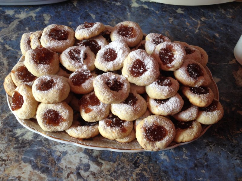 Pentru inceput se mixeaza margarina de prajituri cu zaharul( +zaharul vanilat) peste care se adauga iaurtul, galbenusul si treptat faina si praful de copt. Din compozitia rezultata se formeaza bilute mici in centrul carora se face o mica gaura si se umple cu dulceata. Apoi se baga la cuptor 20 de minute, iar cand sunt gata se presara peste ele zahar pudra.