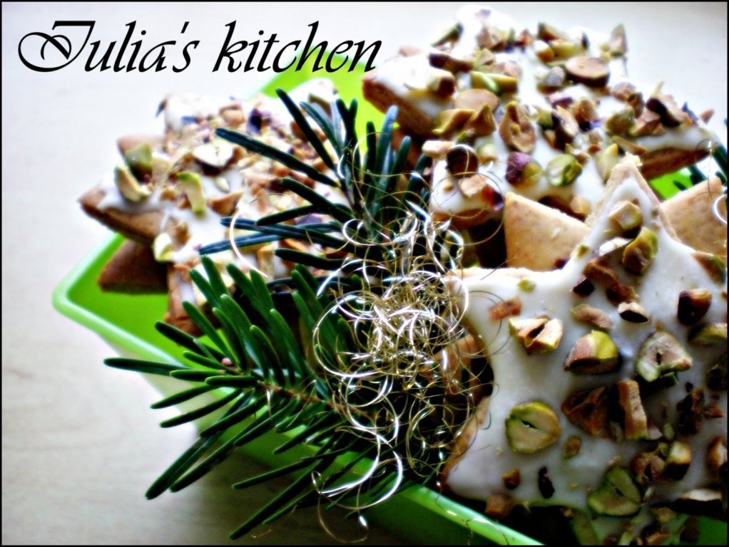 Framantam un aluat din care intindem o foaie subtire si incepem sa taiem diverse forme. Eu le-am facut sub forma de stelute. Punem stelutele in tava tapetata cu hartie de copt si le coacem 12-15 minute la foc mediu.