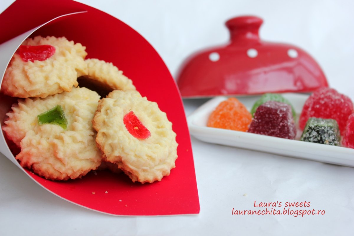 Pregatim o tava prevazuta cu hartie de copt. Punem aluatul intr-o presa de biscuiti sau intr-un poche si formam fursecuri nu foarte mari. Asezam cate un mot de jeleu/ rahat si ii punem la copt, in cuptorul preincins, la foc mediu, pentru vreo 10 minute.
