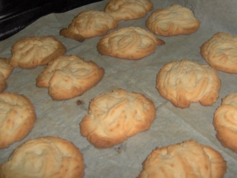 Se freaca bine untul cu zaharul pudra se adauga oul si galbenusul si etenta de vanilie se adauga faina si se face o coca moale.Pe tava de copt se pune hirtie pergament si pe ea cu aparat ptr fursecuri sau cu 2 lingurite se pun gramajoare de aluat.Se poate forma ca limba unei pisici sau ce vreti voi.Se coc la 200 de grade(cuptorul incalzit dinainte ) 8-12 minute pina cind sint rumenite aurii.Le scoatem si le lasam sa se raceasca.(E bine de facut aceiasi marime caci trebuie pusa crema intre ele si lipite doua cite doua, dar se pot minca si asa sint gustoase).