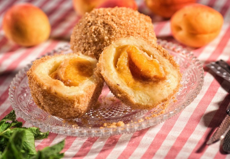 Cu mainile date prin faina, rupeti o bucata de aluat mai mare putin decat caisa, aplatizati aluatul si introduceti caisa in mijloc, apoi imbracati-o in aluat