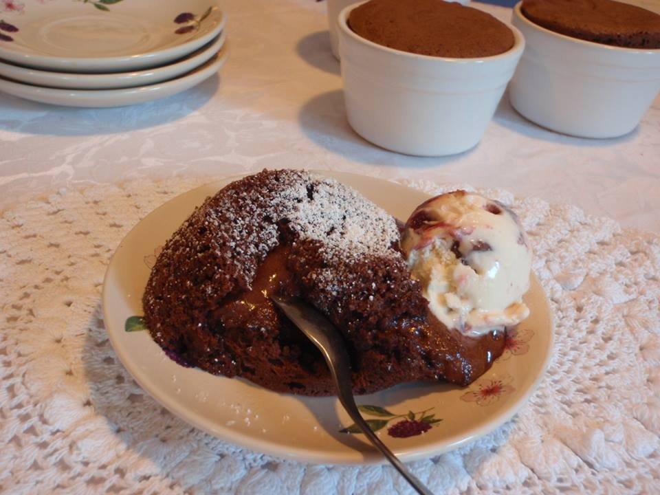 Ungeti cu unt formele (care pot fii vase mici de budinca din metal cu email ori faianta). Umpleti formele cam trei sferturi cu compozitie si introduceti la cuptor aprox 25 minute.