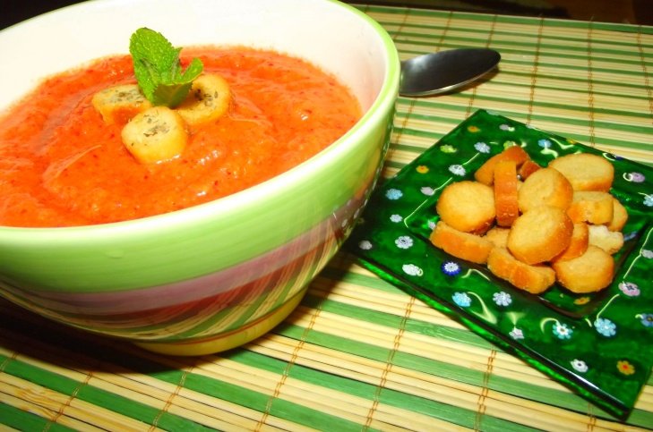 Gazpacho este o reţetă spaniolă, o supă cremă rece de roşii, foarte gustoasă şi răcoritoare vara, care se prepară rapid şi uşor.