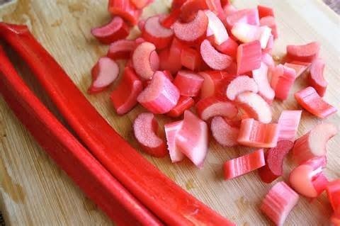 1 Se spala si se taie in cubulete tijele de rubarba;