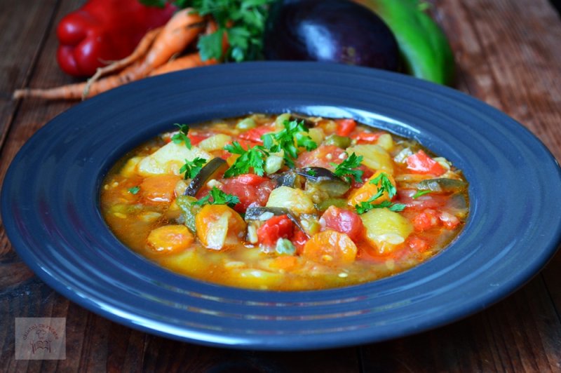 Mutam vasul in slow cooker si adaugam dovleceii si vinetele taiate felii, ardeii taiati fasii si morcovii taiati rondele.