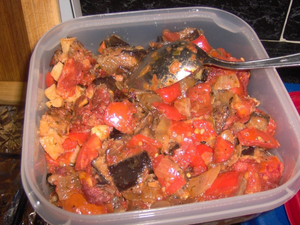 Toate legumele le prajim usor in tigaie in afara de vanata si rosii.Vinetele le spalam de sare strecuram bine si le tavalim in faina si le prajim putin in ulei fierbinte.Ele trebuie sa fie usor rumenite.