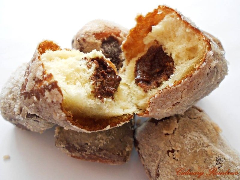 Uleiul se încinge, apoi se reduce focul. Se coc pe ambele părți până când devin maro-auriu ( golden brown ) și uniform gătite. Se scot pe un șervețel pentru 2 minute, apoi se tăvălesc prin zahăr și pudră de malț ( eu nu am avut, așa că am folosit scorțișoară ).