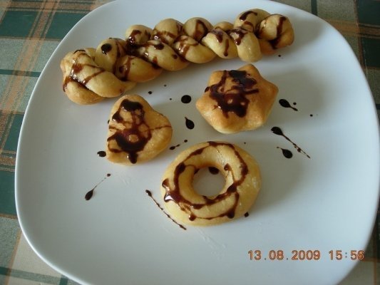 Se intinde coca pe masa de lucru si se decupeaza diferite forme. Dupa ce am terminat de dat formele , punem intro tigaie ulei de palmier si cand este bine incins, incepem sa coacem gogoselele. Le punem la prajit in ordinea in care le-am decupat (primele formatate vor fi si primele prajite) cu grija sa le intoarcem la timp sa nu se arda.