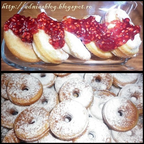 Toate ingredientele se mixeaza bine, rezultand astfel un aluat curgator, dar mai gros decat cel de clatite. Aparatul se pune in priza si se lasa sa se incinga, apoi se pensuleaza fiecare cuib cu putin ulei, se toarna aluatul cu o lingurita (eu am folosit seringa de decorat...mi s-a parut mai simplu asa), se inchide capacul si se lasa sa se coaca gogosile pana se rumenesc.Apoi se scot si se pudreaza cu zahar, sau se glazureaza, dupa gust.