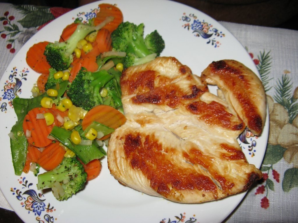 Luam pieptul de pui il spalam il stergem cu un servetel de apa apoi taiem in 2 bucati apoi fiecare inca o data in jumatate le punem la gratar dupa ce le dam cu sare si piper dupa gust,lasam la foc mic 20 minute.