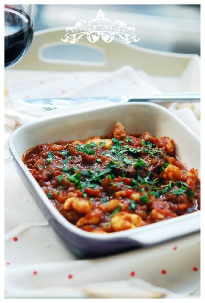 De cand am gustat preparatul acesta in Budapesta m-am indragostit complet. Am incercat anul trecut sa il fac dar nu am fost asa convinsa, asta pentru ca nu am avut rabdare sa las mancarea pe foc prea mult timp iar galustile le-am facut prea tari. Dar de data aceasta, cum nu aveam chef de invatat, am zis sa rascumpar timpul facand totusi ceva util, cum e aceasta tocana. Secretul este sa puneti putin zahar in sos, pentru a taia din aciditatea rosiilor si pentru a nu deveni amar, de asemenea, nu puneti foarte multe ierburi, eu am pus un mix italian pe care il aveam in casa cumparat, daca nu aveti asa ceva, puteti pune cimbru, oregano. Cu cat lasati mai mult pe foc cu atat devine mai delicios, eu am avut rabdare doar 4 ore si nu am completat cu apa, probabil as fi putut sa fac sosul mai lung, data viitoare, pentru ca sigur va veni foarte curand la cat de bun este! Galustile mi-au iesit, in sfarsit, desi aveam foarte multe emotii dupa rateul de data trecuta, deci aveti incredere in reteta aceasta:)