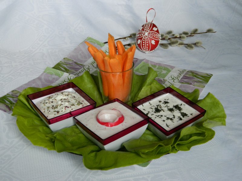Este o gustare sănătoasă de Paști, copiii o să fie încântați să mănânce bețigașe de morcovi cu diferite salate condimentate.
