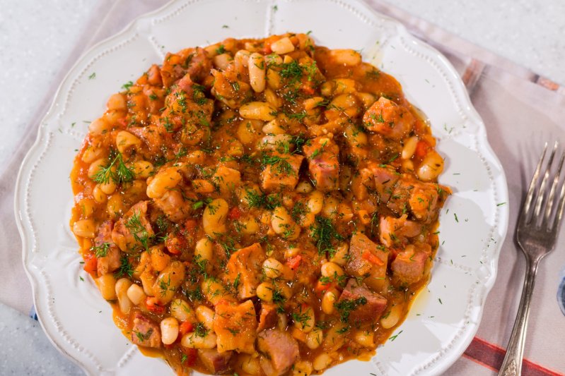 5. Pentru ca e iahnie si nu ciorba, fasolea trebuie sa fie o idee mai putin fiarta, pentru ca o terminati in sos, si va mai fierbe si-acolo.