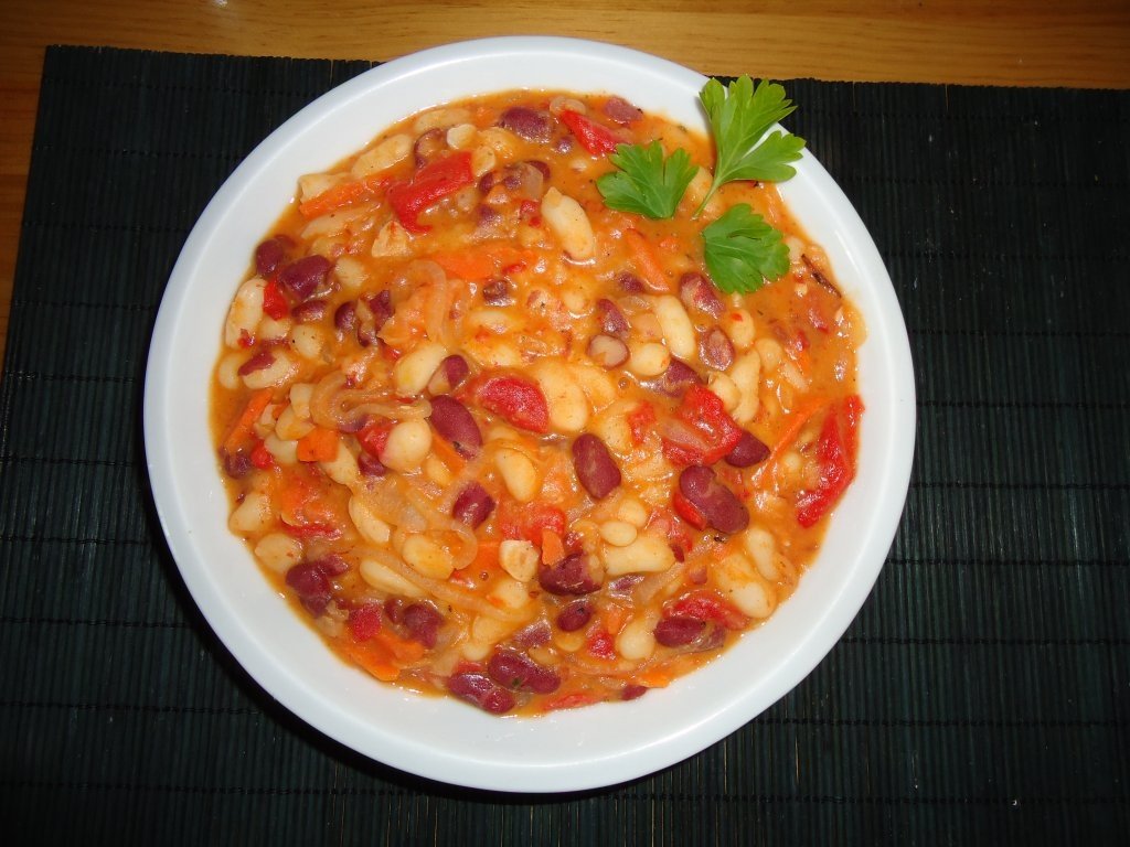 Ceapa se taie solzisori(daca e prea mare se mai taie o data pe jumate)si morcovul se taie in suvite subtiri(se poate da si pe razatoarea mare).In cratita in care urmeaza sa pregatim fasolea se pune ulei la incins si se calesc pe rand la foc iute:morcovul,ceapa si ardeiul.(cu timp de calire de 5 min intre fiecare).Se adauga usturoiul,se caleste impreuna cu legumele 2,3min,se pune fasolea si restul de ingrediente(boia,piper,delikat,frunza de dafin si apa).Se probeaza de sare si se fierbe la foc potrivit 10-15min amestecand din cand in cand.Sper sa va placa!!POFTA BUNA!!