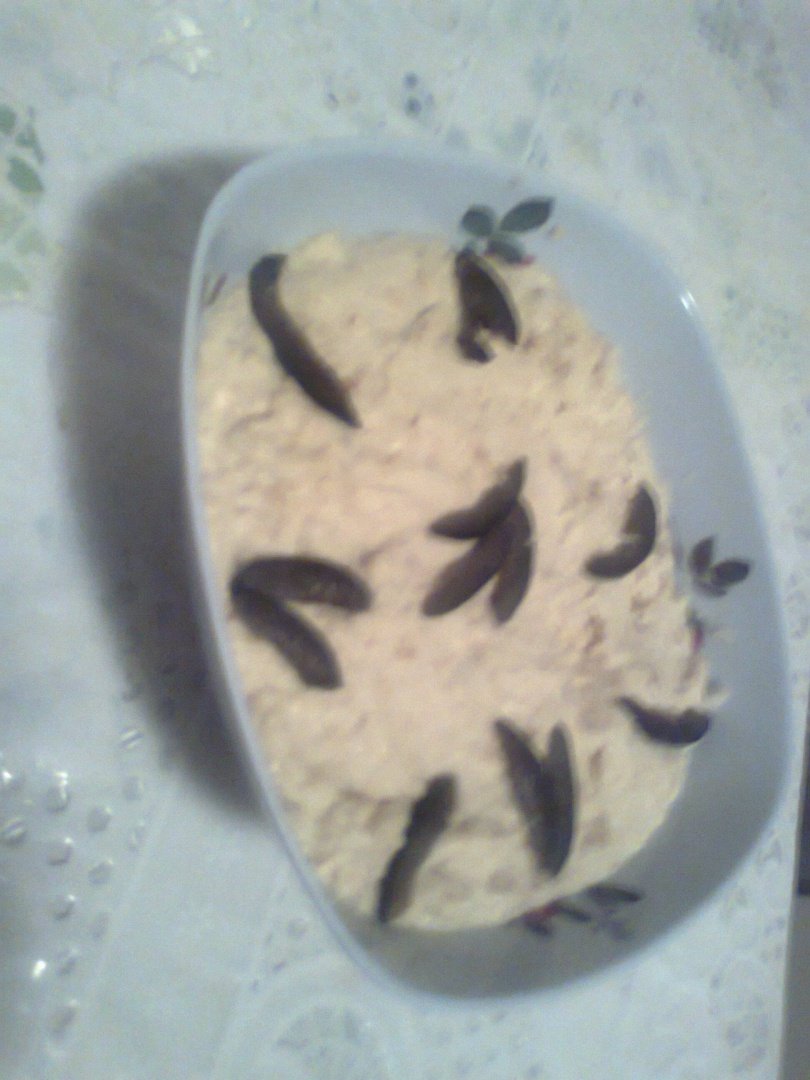 Luăm un platou şi punem pasta de năut pe platou, deasupra punem cele 2 linguri de legume călite şi uniformizăm. Peste iahnie punem frunzuliţe de pătrunjel şi feliuţe subţiri de măsline.