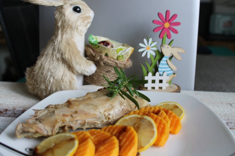 Într-o tavă termorezistentă și încăpătoare se așează iepurele, asezonat, în burtă se pun câteva felii de lămie, usturoi și kaiser/piept de porc cu usturoi.