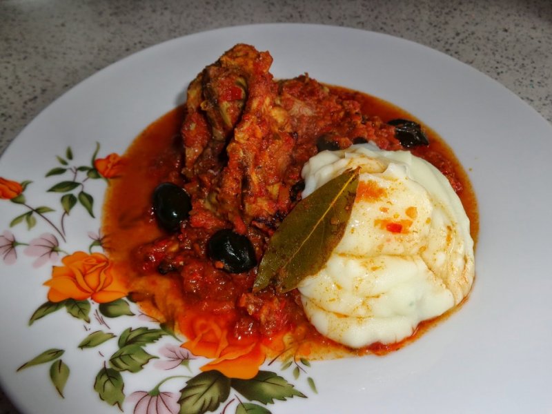 Legumele se toaca marunt sau se baga la robot separat. Calim usturoiul zdrobit impreuna cu maslinele dupa care adaugam si iepurele. Scoatem totul din oala si calim in uneliul ramas ceapa apoi adaugam pe rand morcovul si ardeiul calind dupa fiecare. Adaugam rosiile si lasam putin sa se lege ca un sos dupa care punem si iepurele taiat bucati. Punem condimente si verdeata apoi dam la cuptor pana se rumeneste deasupra.
