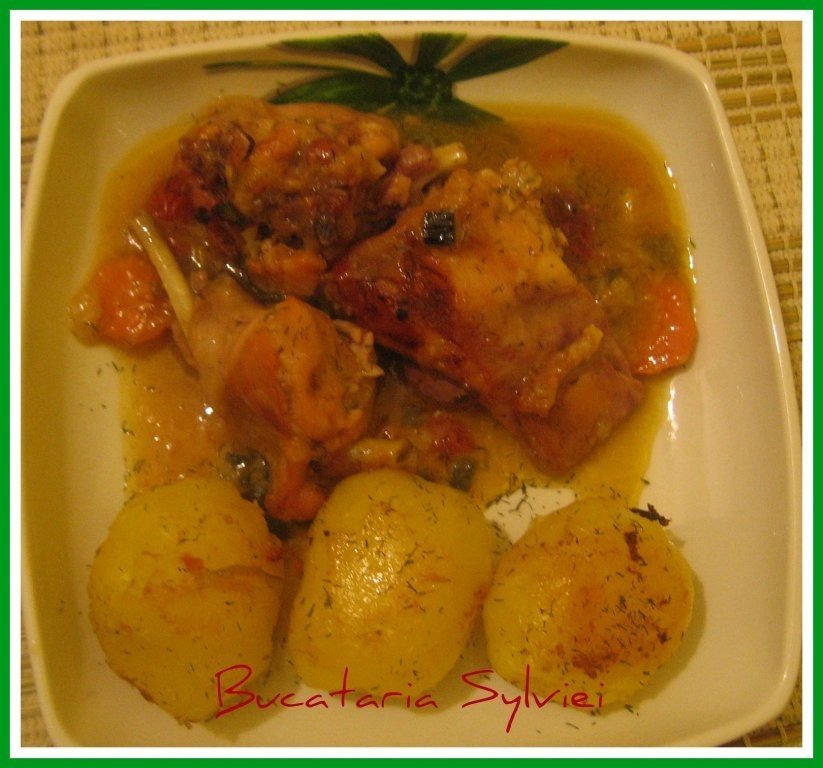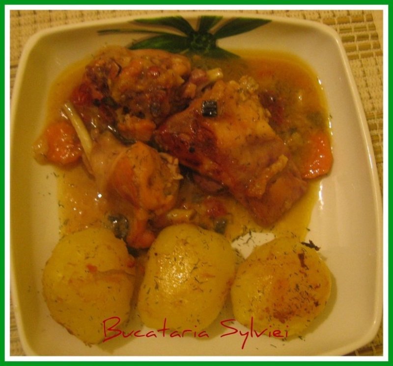 Lasam friptura timp e o ora, micsorand focul spre final, in ultimele 30 de minute adaugam intr-o tava separata cartofii. Este gata atunci cand carnea e rumenita deasupra si sosul este consistent. Are un gust deosebit si carnea de iepure preagatita asa e foarte frageda si aromata, va ofer o portie pentru a va convinge !