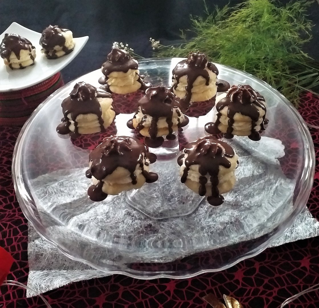 Lasam sa se tempereze si cu o lingura punem deasupra pe fiecare prajitura.