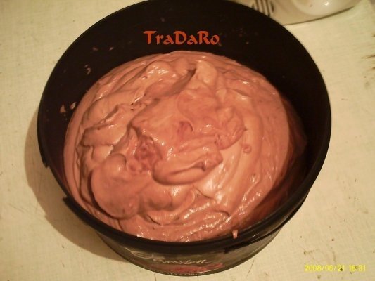 - Se pune in bol 200 ml lapte rece, se adauga praful de ciocolata, romul si se freaca cu mixerul la viteza mica 1 minut dupa care se trece la viteza mare timp de 2 minute. Se pun 2 linguri pline de zahar pudra si se mai freaca 1 minut, apoi se adauga iaurtul cu pulpa de fructe exotice si se mai amesteca 1 minut dupa care se rastoarna peste inghetata de capsuni.