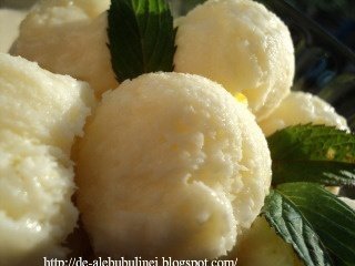 Am turnat compozitia in caserole si am introdus-o in congelator (a stat in congelator cca 4 ore). Din cand in cand am amestecat-o.