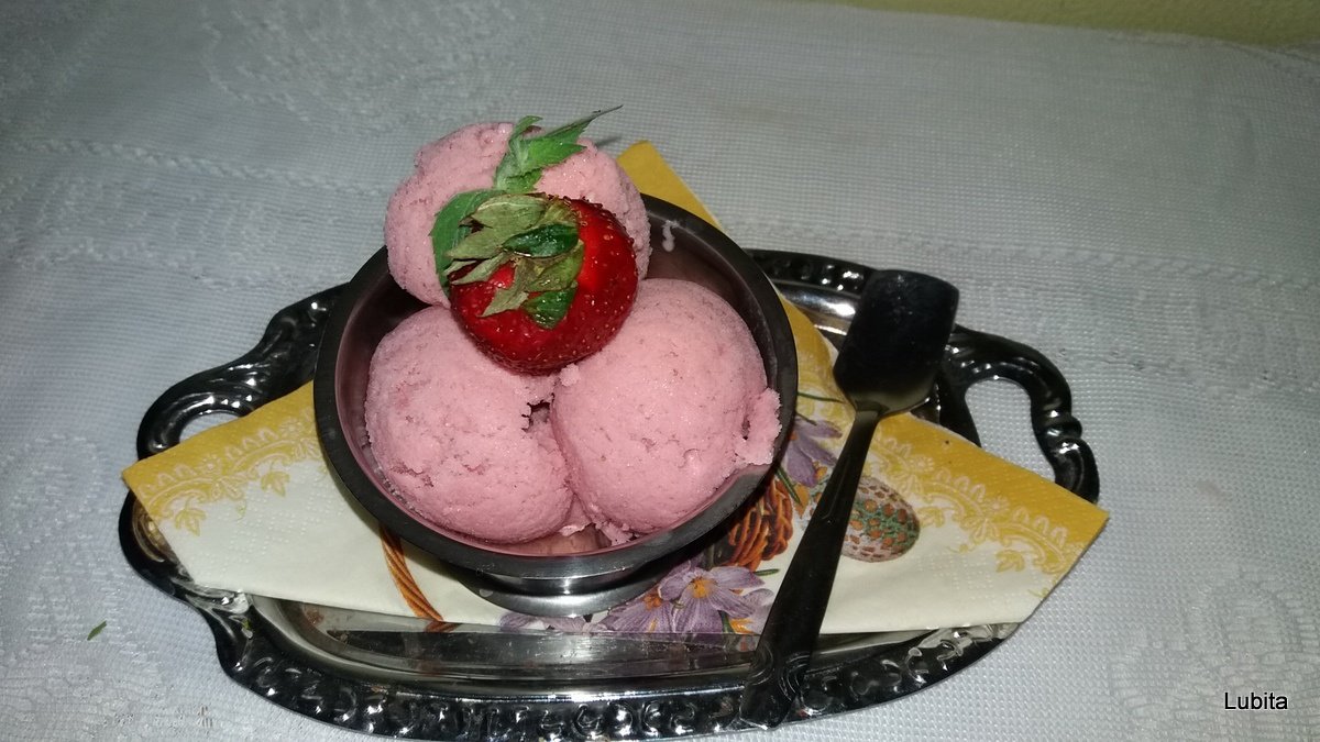 Pentru cine nu are aparat de inghetata, se rastoarna compozitia intr-un vas, de preferinta metalic si rotund, se lasa la congelator 1h, dupa care se scoate, se amesteca energic cu o lingura de lemn si, daca e nevoie, se mai lasa 1 h, amestecand din nou dupa acest timp.