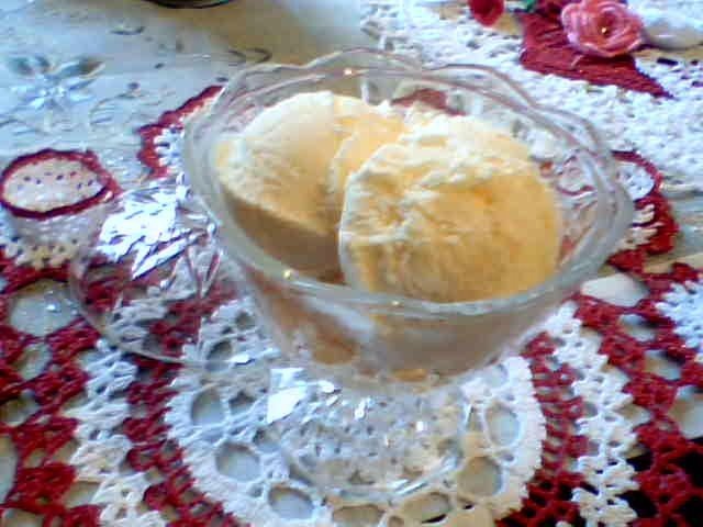 **Pentru cine nu are masina de inghetata, bateti bine compozitia cu mixerul (cam 3 min.) sau telul (6 min.)si dupa asta puneti compozitia in container de plasctic la congelator si o lasati cel putin 1 ora).
