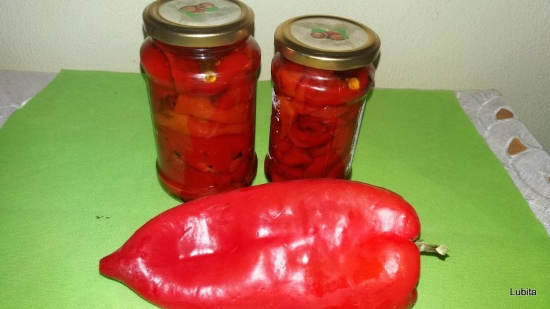 Ardeiii spalati,uscati,se pun la copt pe gratar sau in cuptor;dupa ce s-au curatat de coaja,se rup fasii,se pun in borcane,deasupra se pun in cruce doua bete de marar uscat,sa nu se ridice ardeiii la suprafata,se adauga solutia fiarta separat avand grija ca sa nu ramana goluri de aer,se infileteaza bine capacele,se fierb borcanele 30min din momentul fierberii apei,se racesc in patura apoi se depoziteaza la camara.