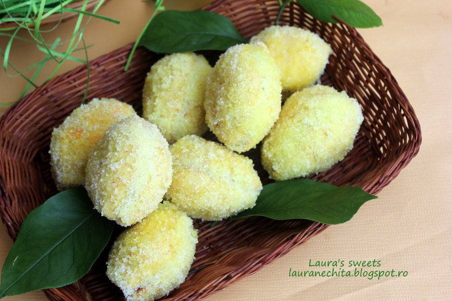 Intr-un vas, punem un pic de lapte dulce, un pic de zahar, si amestecam pana se topeste zaharul. Adaugam un praf de colorant (eu am folosit un pic de sofran indian, sau turmeric) si amestecam. Luam cate o lamaie, o scufundam un pic in "baia" de culoare, apoi o tavalim prin zahar. Le punem deoparte. Dupa ce s-au zvantat cateva minute, le trecem rapid iar prin baia de culoare, cat sa se imprime si pe zahar culoarea. Le dam deoparte pana in momentul servirii. Sunt foarte fragede, si au un gust placut de lamaie.