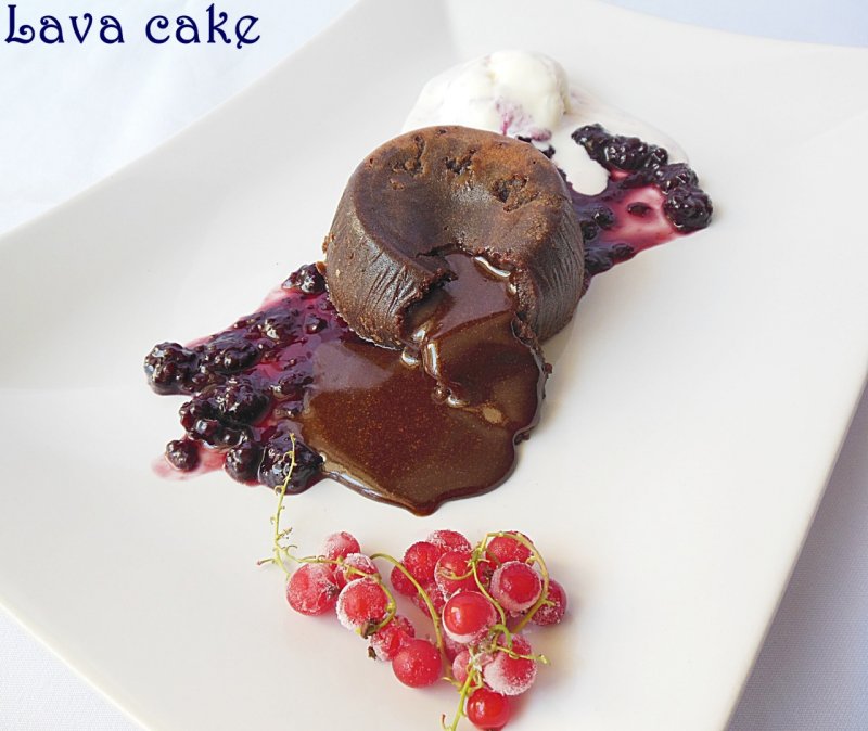 Ungem cu un strat de sos de mure farfuriile in care servim, rasturnam cate un lava cake, usor, peste sos.