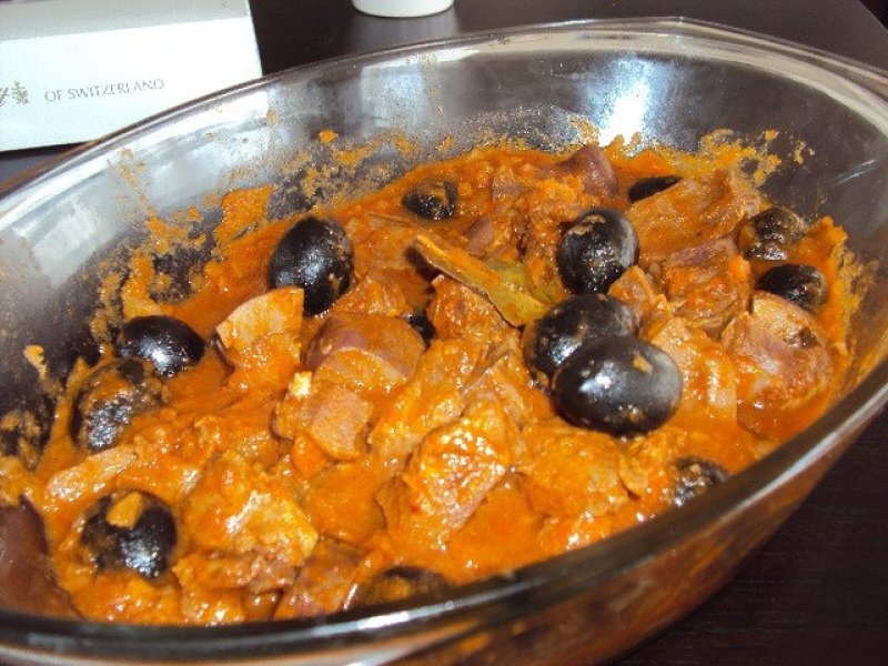 Se calesc ceapa impreuna cu prazul in ulei, pana aceastea devin aurii la culoare, se adauga usturoiul pisat, sarea, piperul, boiaua (dupa gust) si foile de dafin intregi, bulionul si paharul de vin si cel de apa, rezultand un sos, peste care, atunci cand a scazut la jumatate, se adauga limba de porc fiarta in prealabil.
