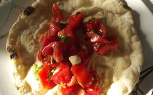 Din ingredientele de mai sus se face un alut potrivit de tare, nelipicios. Adica punem faina cu praful de copt. In interior facem un caus in care punem apa. Amestecam pana la omogenizare. In timpul framantarii incorporam uleiul. Se portioneaza (ies cam 8 lipii), intindem fiecare lipie cu sucitorul si o coacem in tigaie pe aragaz. Am picat cate putin picaturi de ulei si in tigaie, cam la 2-3 lipii.