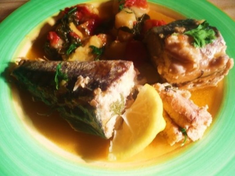 Se pune in tigaia adanca Doubletta pestele curatat si taiat bucati mari (fara cap si coada)impreuna cu o cescuta de apa si un praf de sare.Rosia se curata de pielita si se taie cubulete.Se adauga in tigaie cu pestele si zeama de la o lamaie si uleiul de masline.Cartoful se curata si se spala, se taie cuburi.Se pune deasupra capacul sita pt.aburi si se pun cuburile de cartofi deasupra.peste capacul sita se pune capacul de iena.Dupa un timp cand vedeti ca s-au sotat cartofii, ii adaugati si pe ei langa peste si amestecati cu rosia si sosul format.Adaugati patrunjelul verde si gata.