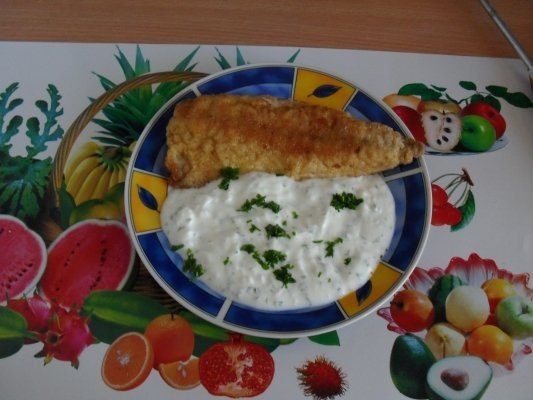 Intre timp, la iaurt adaugam usturoiul dat prin presa de usturoi si patrunjelul tocat marunt. Se serveste pestele alaturi de acest sos racoros.