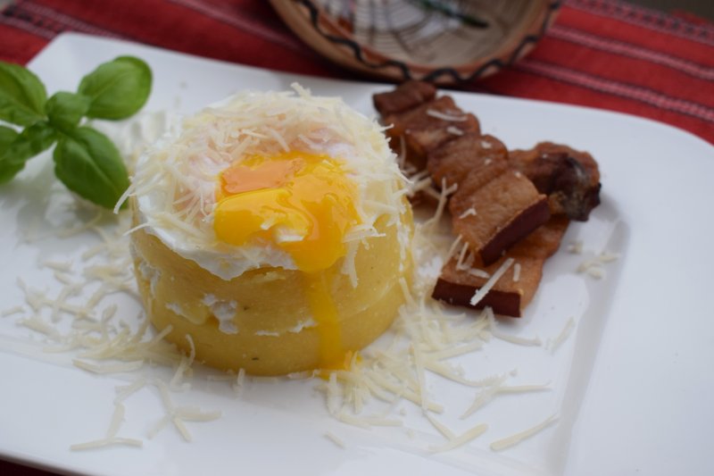 Deasupra am asezat un ochi de ou si alaturi niste bucati de slanina prajita.