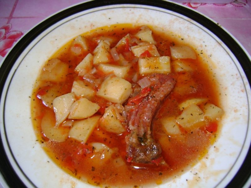 Se taie costita bucati si se pune ca calit, apoi se adauga ceapa taiata marunt si se lasa sa se caleasca.