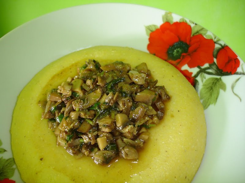 Se toaca ciupercile, ceapa rosie se taie julien si cea verde oblic. Se calesc in ulei, se adauga 1/2 din cantitatea de usturoi pisat, putin patrunjel si condimente. Se pun ciupercile in vreo 3-4 transe si se calesc acoperite cu capac. La sfarsit se adauga restul de usturoi si patrunjel.