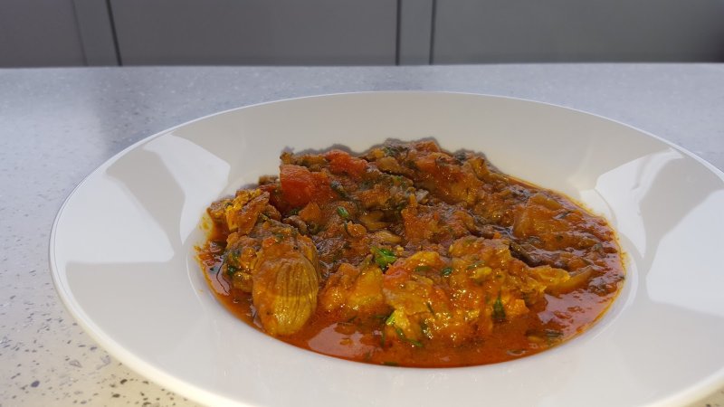 Calim usturoiul zdrobit si slanina in putin ulei, adaugam apoi ceapa si la sfarsit morcovul. Punem carnea taiata cubulete, condimentele, o parte din verdeata si o cana de apa fierbinte sau supa. Cand a fiert carnea punem bulionul si restul de verdeata, acoperim cratita.