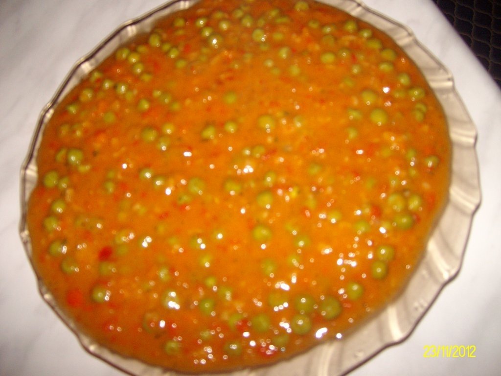 Am facut o ingrosala din faina si o cana cu apa si am adaugat peste mazare.