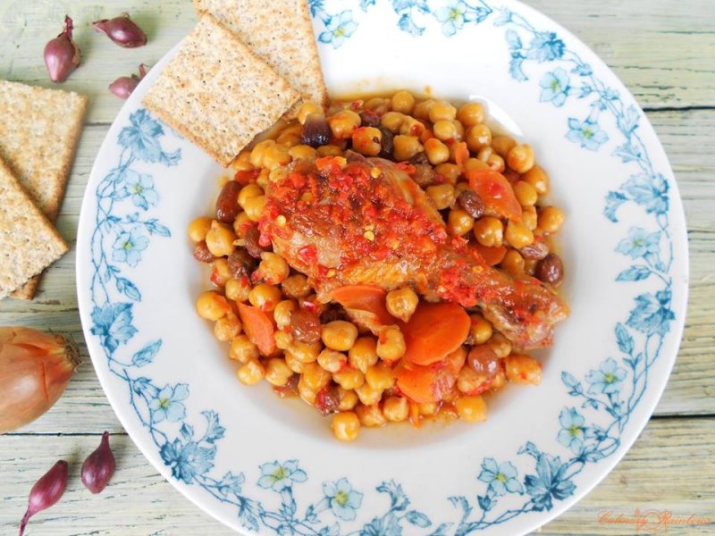 Când năutul s-a fiert complet am adăugat restul de pastă de ardei. Am potrivit gustul cu sare și am așezat totul pe două farfurii acoperind fiecare pulpă de pui cu peperoncino în ulei de măsline.