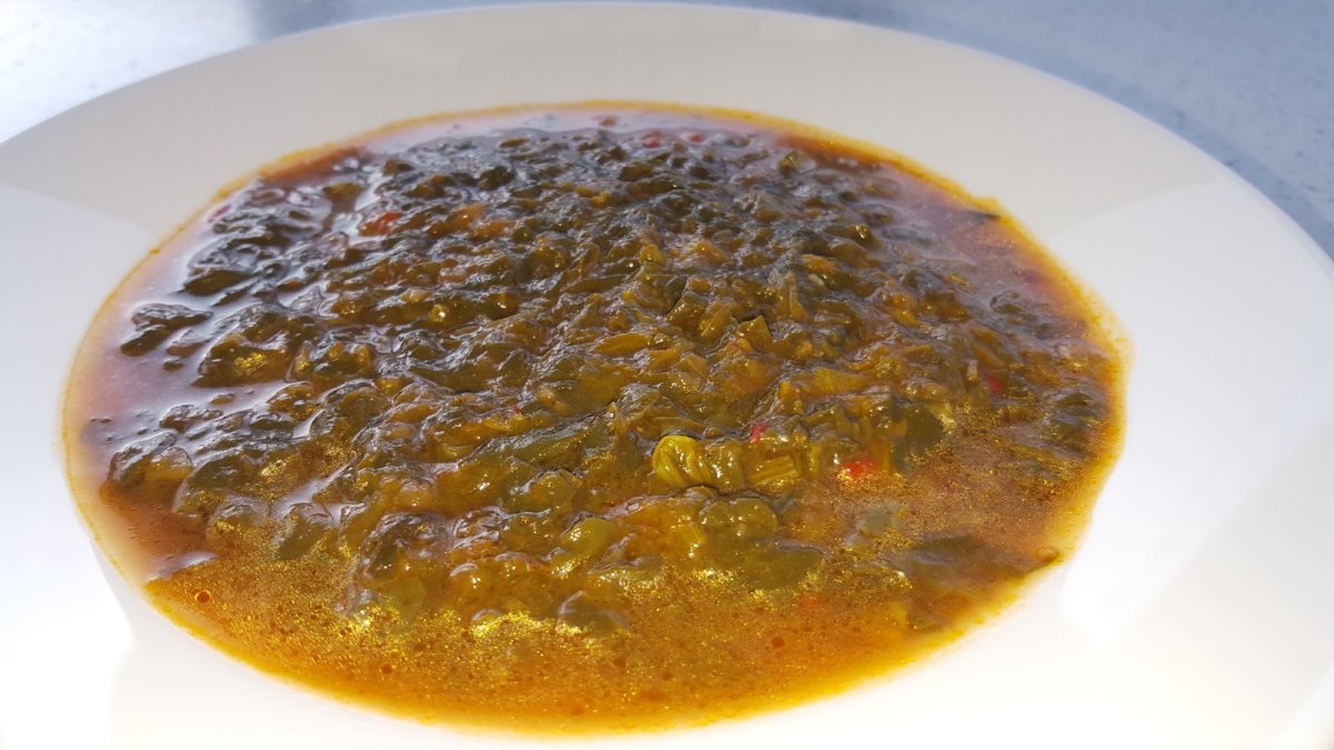 Spanacul spalat se pune in apa clocotita cu sare, dupa vreo 10 minute se pune la scurs. Calim ceapa tocata impreuna cu usturoiul zdrobit, adaugam morcovul ras si ardeiul tocat. Peste legume punem la calit si spanacul tocat, adaugam condimentele si cateva polonice de apa de la fiertul spanacului. Cand au fiert legumele punem bulionul si verdeata.