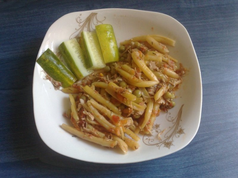 Mai intai de toate se fierbe mazarea si fasolea cca 20 minute in apa cu putina sare, dupa care se scurge. Intre timp carnea se pune la fiert cam 30 minute ( sau pana se fierbe efectiv).