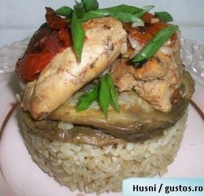 In momentul in care se ratoarna,trebuie sa fie ca un tort,sa se vada straturile(pui,vinete,orez).