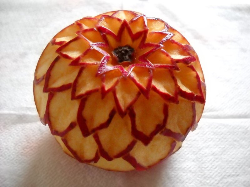 Marul se sculpteaza (in tot timpul lucrului se umezeste cu zeama de lamaie, sa nu oxideze), la sfarsit se trece prin gelatina.