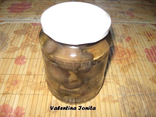 Ciupercile se curata,se spala si se fierb in apa cu putina sare . Dupa fierbere se clatesc putin ,dupa care se dau in doua,trei clocote in marinata preparata din : o parte otet, o parte apa ,1-2 lingurite zahar ,sare si piper dupa gust . Marinata se pregateste,se masoara in functie de numarul de borcane... Ciupercile se pun fierbinti in borcane,se toarna marinata la fel de fierbinte , se inchid ermetic si se tin invelite foarte bine pana a doua zi .