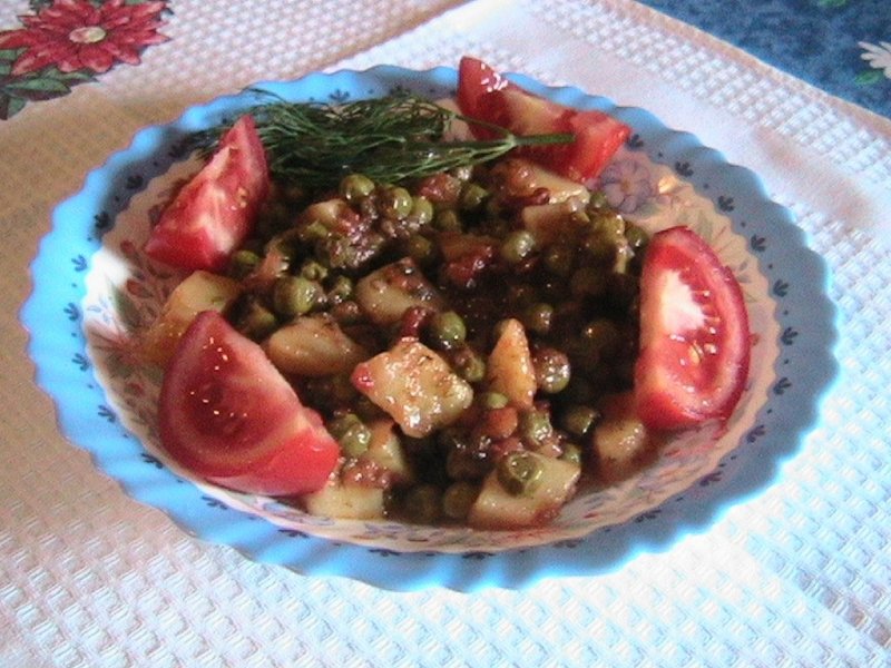 1. Se curate mazarea pastai, iar boabele obtinute se spala si se fierb 15 minute in apa cu un strop de sare.