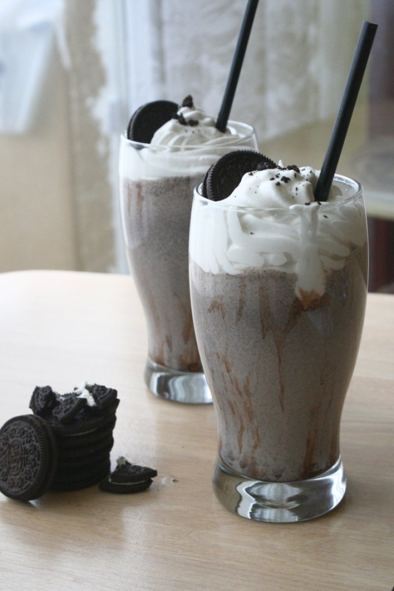 Eu zic sa dublati,ba chiar sa triplati ingredientele,asa, ca sfat:)). In blender punem biscuitii oreo si ii maruntim bine.Adaugam apoi laptele,inghetata si daca doriti puteti pune si putina frisca lichida.