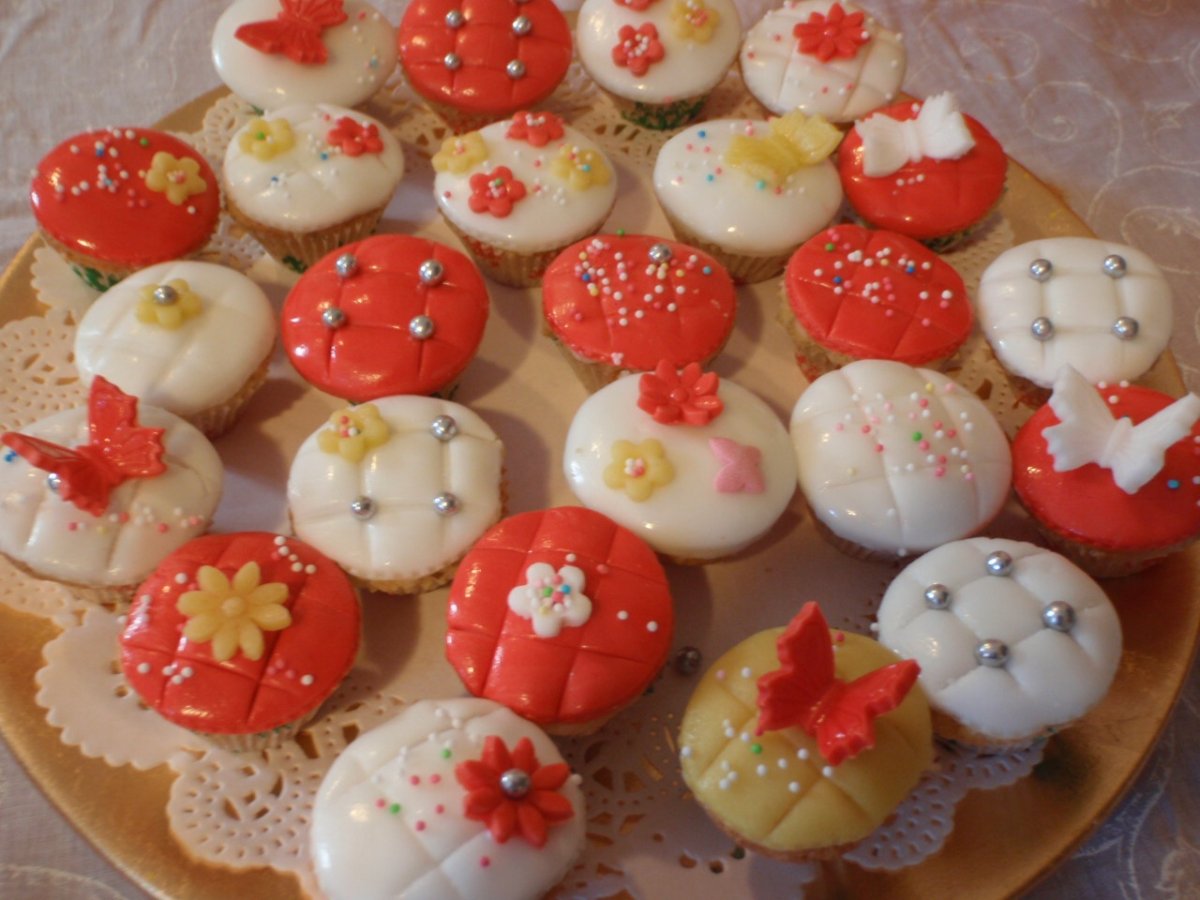 Intindem pe fiecare brioșă cu ajutorul unui cutit crema de unt si apoi le ornam cu fondant ca in imagine. Puteți folosi orice decor..după imaginația fiecăruia....