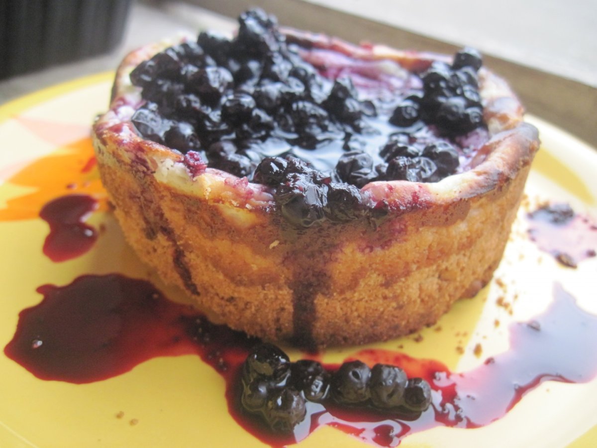 Se serveste rece. Eu am servit-o cu sos de afine: am pus pe foc o craticioara cu o mana de afine congelate si 1 lingura de zahar pana s-a topit zaharul.