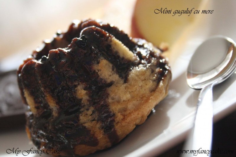 Turnam aluatul in formele de guguluf sau intr-o tava de prajitura tapetata cu hartie de copt (dimensiuni aproximative 27x40 cm).